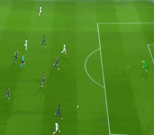 第63分鐘,費蘭-托雷斯右路突破倒三角傳球,扎爾巴尼滑鏟解圍不遠,奧爾莫獲得絕佳機會,門前推射竟然被阿什拉夫封堵。