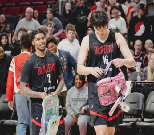 而這一個球迷日,開拓者所呈現(xiàn)的不止是比賽,還有表演,他們上演了NBA常見的“新人歡迎”內(nèi)容:讓新秀球員背上了兒童書包。
